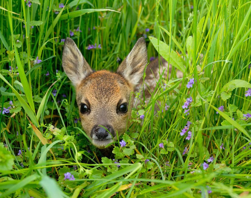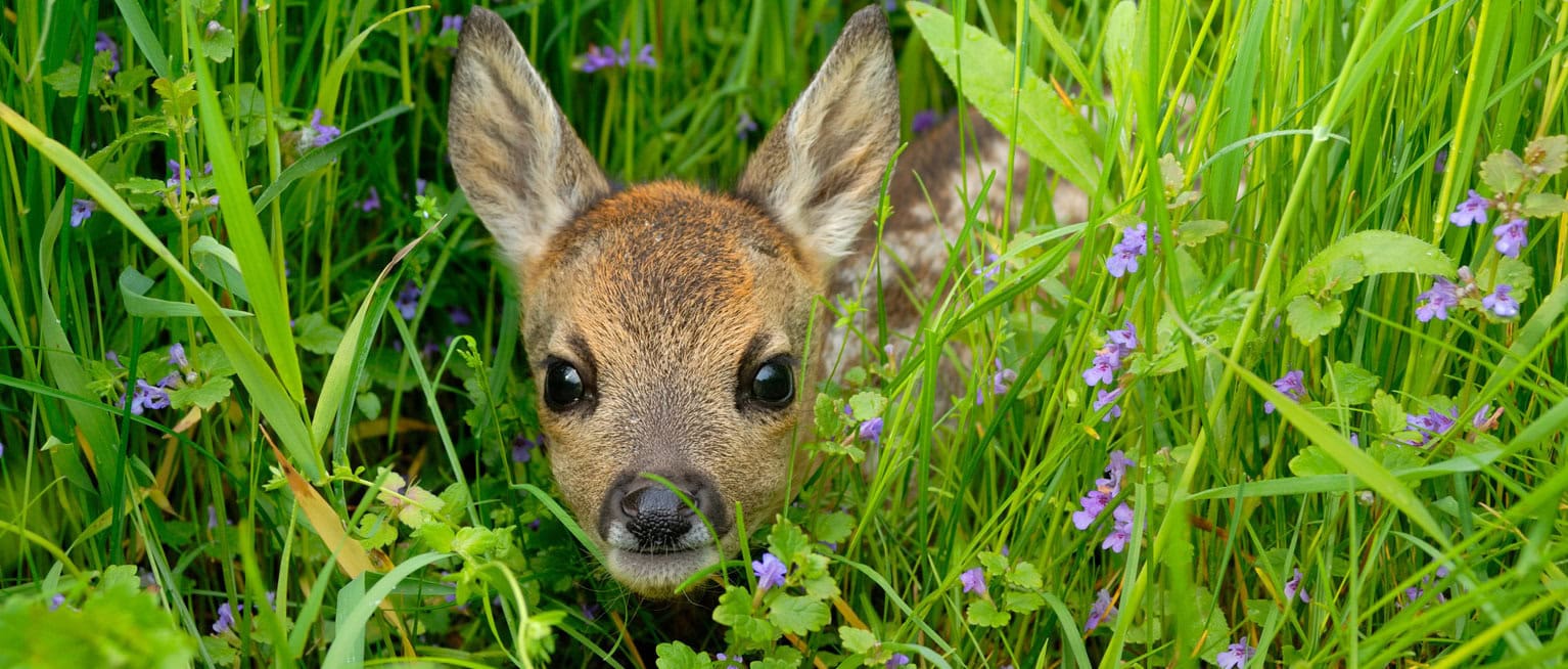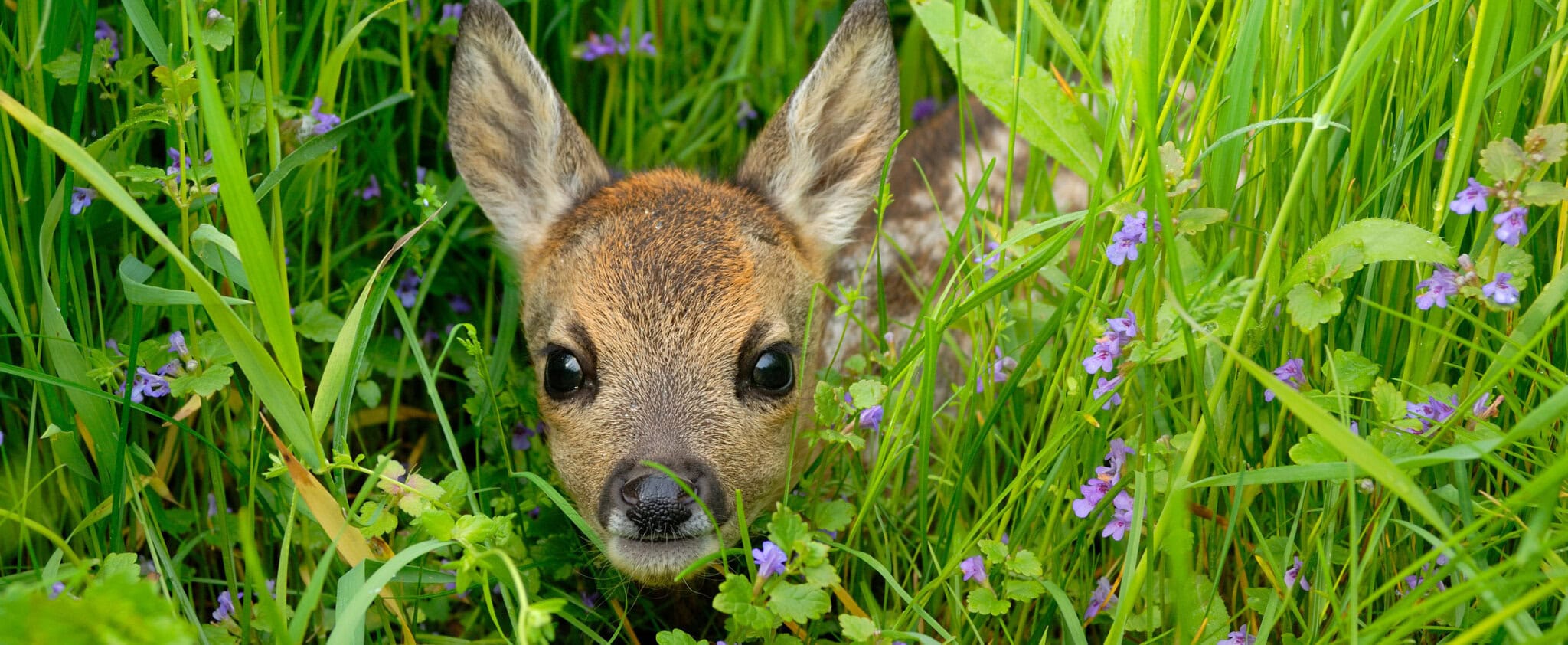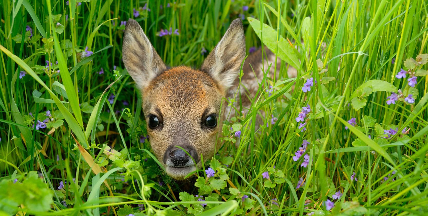 Bei der Frühmahd von Wiesenflächen besteht ein hohes Risiko für versteckte Wildtiere, insbesondere Rehkitze.